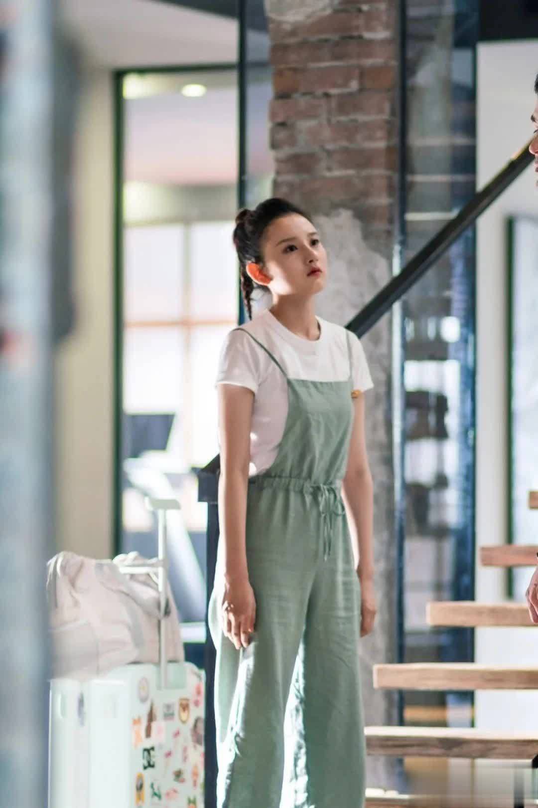 这一身也是非常好穿的类型,把连体裤穿在白色T恤的外面,街上有不少女孩也这么做。夏天的话颜色尽量选稍微淡一点的,看上去更加小清新和和谐一些。另外带子越细,视觉上会更苗条。