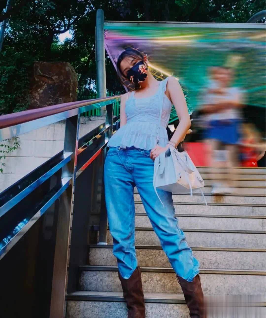 而她更是胆子大到用骑士靴来搭配夏天的短上衣和牛仔裤,整身看着就好飒。如果再加上一顶草编帽,可以直接去音乐节呢。下次出去蹦迪的朋友们也可以试一试这样的打扮哦。