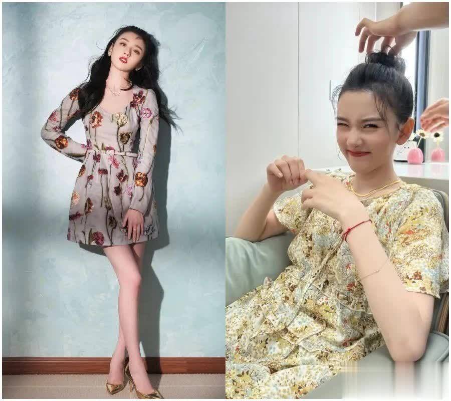 其实她穿过不少有花朵的碎花裙,不过比起左边这种有腰身的,显然右边的这一条看上去有那么点显胖。肚子上有肉肉的女生,尤其不推荐这一种款式,比较宽松的款式会在视觉上没有那么的显瘦,相反来说加一条腰带,有的时候是事半功倍的。
