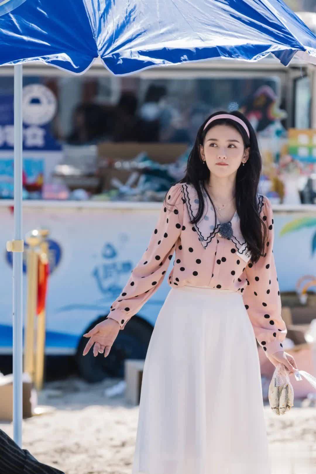 其实她以前还有过这样的穿白色紧身裙,外面配一件衬衫的穿搭,这两年比较小了。这一身说实话还挺辣的,可能适合20岁刚出头的妹妹们,年纪再稍微大一点,这样穿就没有那么有青春的感觉了。
